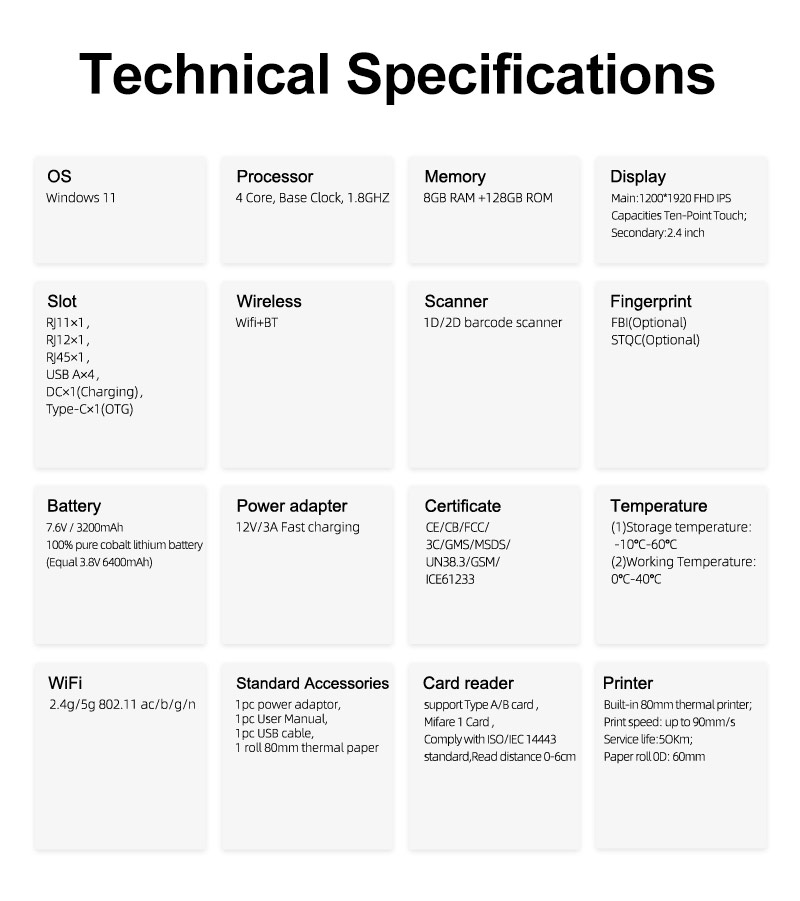 | Physical Button | Power ,Vol+/-,Reset ,scanner |